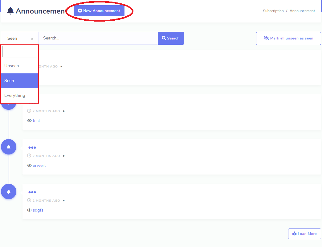 Here, you will also mark single anouncement as read or mark all the notifications as read. There are some filters and you can you can also search your notification
