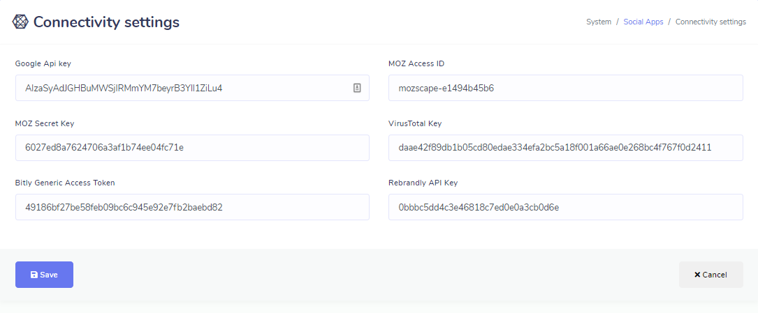XeroSEO has features of malware scan, MOZ ranking cheking and mobile ready checking, Social Network Analysis,URL Shortener These five features need some other parameters to work (MOZ Access ID, MOZ Secret Key, Google API Key,Virus total key,Bitly generic access token, Rebrandly API Key )