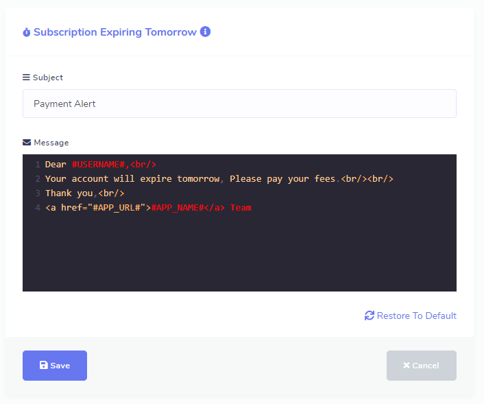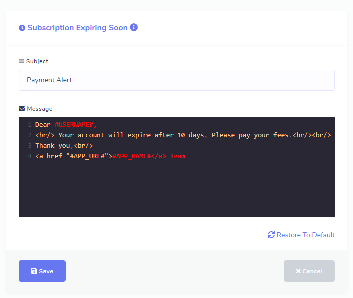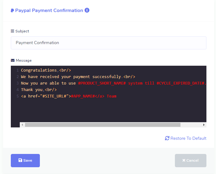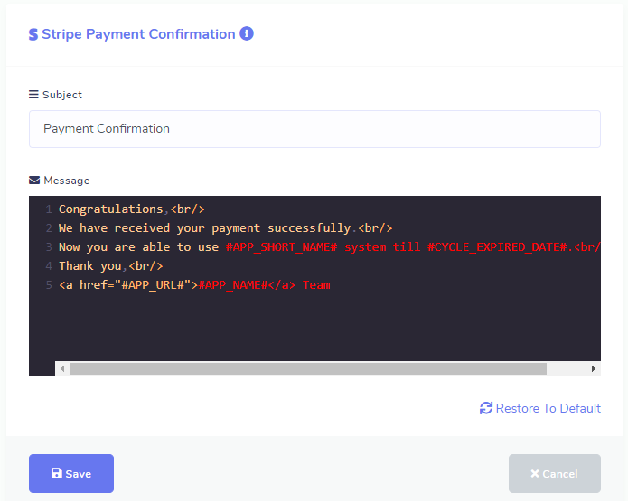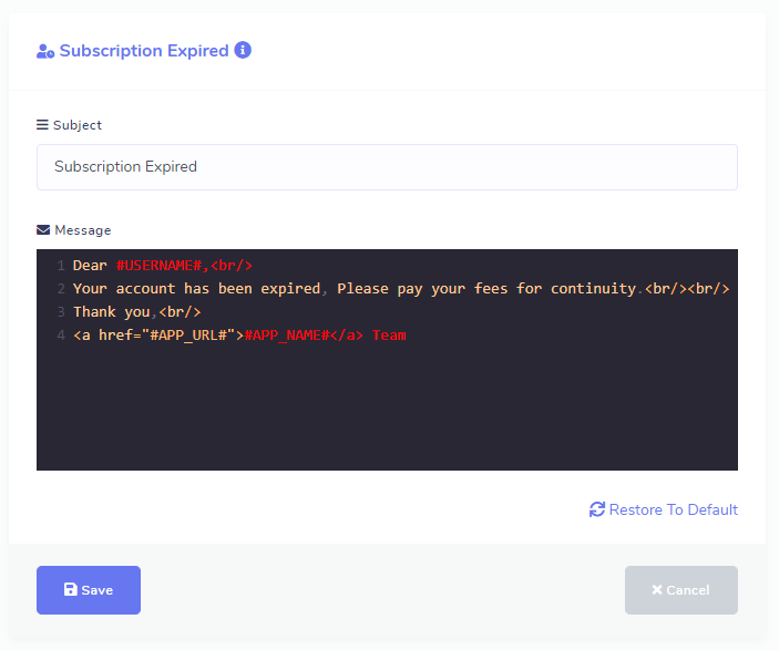 System sends several emails to users for different purposes. Here you can edit the email content to be sent. Some email templates are for extended license only.