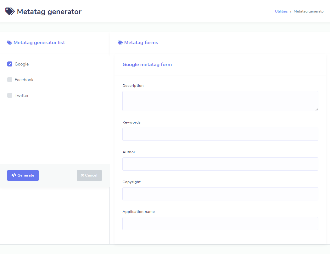 Meta tag Generator