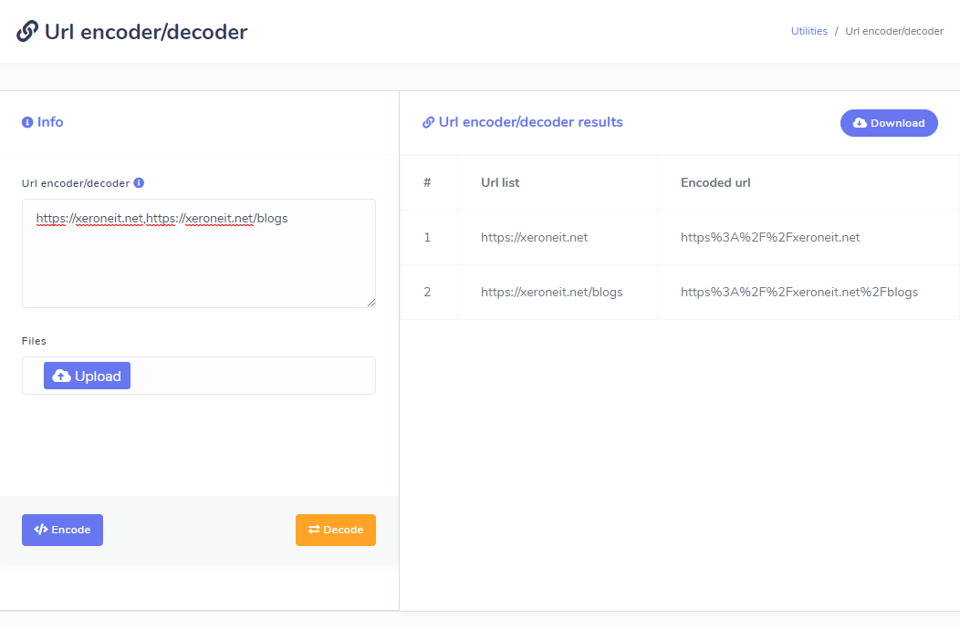 • URL encoder/decoder is tool to encode and decode urls to encoded string and plain text. Just enter your url list directly into text field or upload a text file of url list. Hit start searching. After searching is completed a pop up window will come and you have option to download your encoded or decodes urls into a csv file.